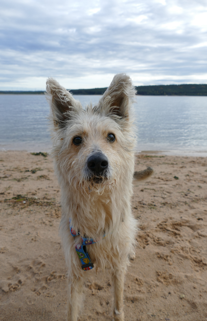 Wir waren in einer Tierklinik hier in der Nähe und dort wurde uns gesagt, dass sie eine Reizung der Bauchspeicheldrüse hat und das mit den Medikamenten wieder besser wird. Organisch wurde im Ultraschall erst nix gesehen. Keine Vergrößerung der Leber oder Gallenblase und auch die Bauchspeicheldrüse war unauffällig. Wir fuhren also in den Urlaub. Es wurde ihr letzter Urlaub. Wir genossen jede Sekunde, die wir miteinander verbrachten und ich konnte zusehen, wie sie schwächer wurde. Trotzdem war sie ganz aus dem Häuschen vor Freude, als wir an den Strand fuhren. Strand hat sie immer geliebt und ich gönnte ihr von ganzem Herzen ihre Freude. Da war mein Wuschelmädchen wieder! Meine lebensfrohe Shiva.