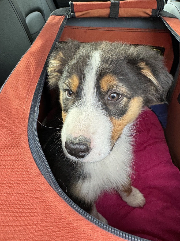Schweren Herzens und ganz vernünftig, musste ich die kleine Cydney noch da lassen. Schließlich wurde ich in zwei Wochen am Knie operiert und erst danach durfte sie einziehen. Ich wollte nichts überstürzen und musste geduldig sein. Erstens war sie noch zu jung und zweitens ist es für die Bindung auch blöd, wenn ich direkt nach 5 Tagen gleich wieder für eine Woche weg bin. Also durfte sie mit neuem Namen am 12.12.2023 einziehen und wirbelt seitdem mein Leben durcheinander. Indigo. Der Name war so fest in meinem Kopf mit einem neuen Hund verankert, dass ich ihn niemals hätte ändern können.
